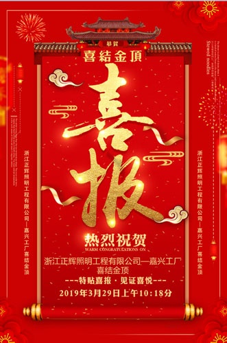 浙江正輝照明工程有限公司--嘉興工廠喜結金頂