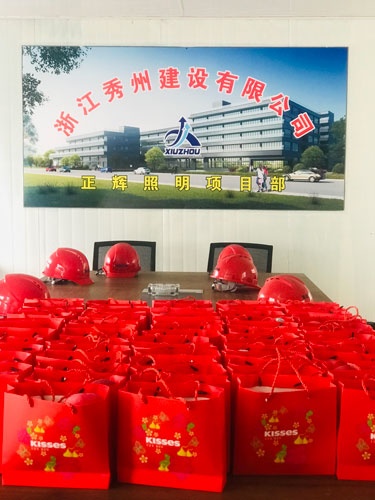 2019年3月29日上午10:18分,在嘉興市秀洲區(qū),浙江正輝照明工程有限公司正在舉行新廠房結頂儀式。